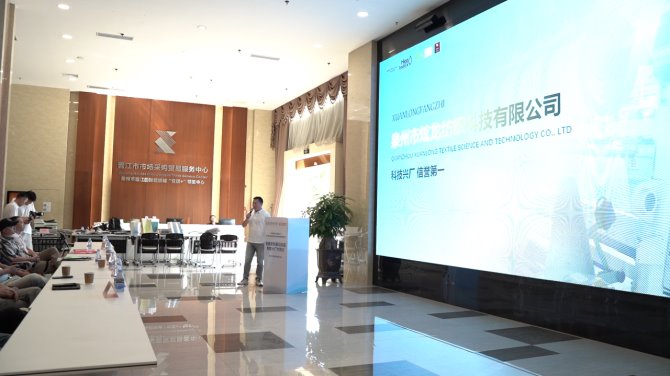 泉州市炫龍紡織科技有限公司為與會嘉賓們介紹的是三層網、經編網布、針織服裝布、休閑時尚女裝網布、鞋用各類BK布、拉毛布、大小提花布、賈卡提花、3D飛織、各類布料加工貼合等主打產品,并圍繞各材料的性能特點、適用場景及供應優勢進行了簡要闡述。